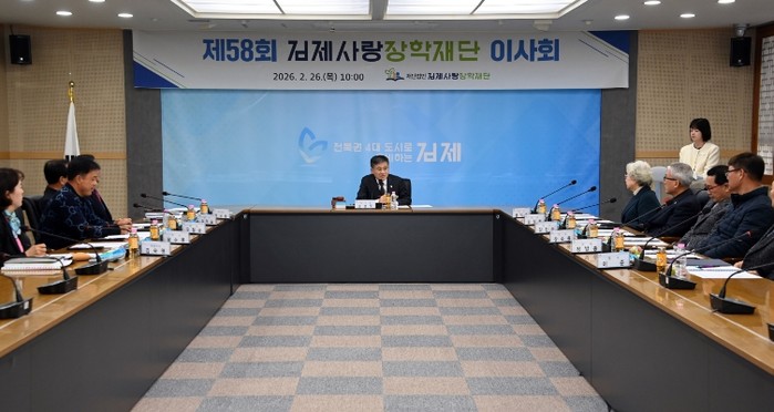 [파이낸셜경제=김예빈 기자] 김제시는 재단법인 김제사랑장학재단(이사장 정성주)이 26일 시청 2층 상황실에서 임원 12명이 참석한 가운데 제58회 정기이사회를 개최했다고 밝혔다.