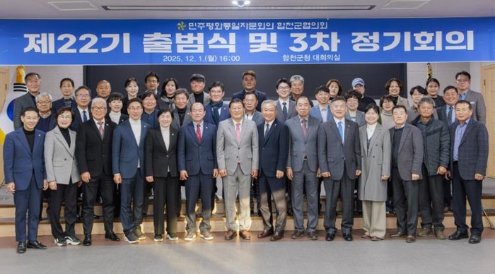 [파이낸셜경제=김예빈 기자] 민주평화통일자문회의 합천군협의회는 12월 1일 오후 4시 합천군청 대회의실에서 합천군수, 자문위원 등 50여명이 참석한 가운데 ‘제22기 출범식 및 2025년 3차 정기회의를 개최했다.
