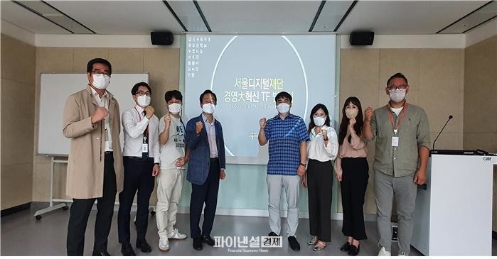 | ▲사진. 서울디지털재단이 23일 ‘재단 경영 대혁신 TF팀’을 발족하고 발대식을 개최했다. (왼쪽에서 4번째 서울디지털재단 강요식 이사장) |