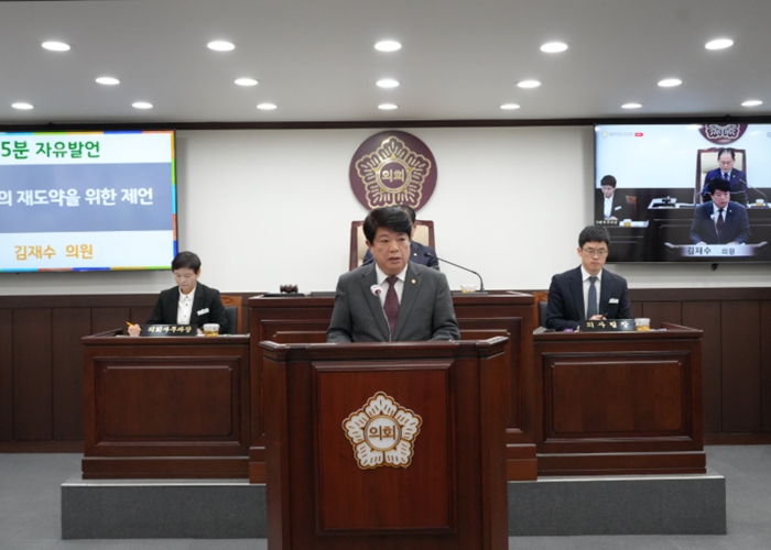 [파이낸셜경제=김기보 기자] 동두천시의회 김재수 의원(더불어민주당, 가 선거구)은 25일 열린 제344회 임시회 개회식에서 건실한 시정 운영을 촉구하는 5분 자유발언을 진행했다.