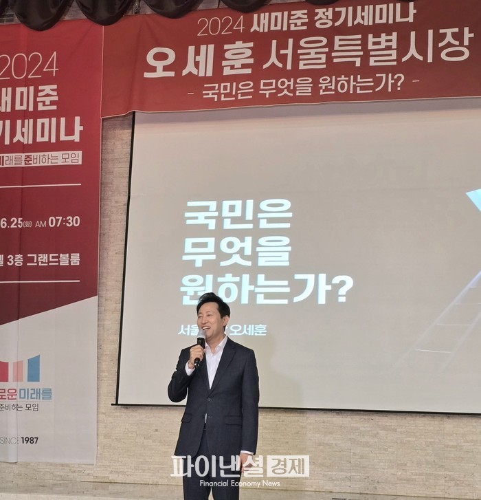 '새로운 미래를 준비하는 모임(새미준)'은 25일 오전 서울 공군호텔에서 정기세미나를 개최했다. 이날 세미나에서는 오세훈 서울시장의 ‘국민은 무엇을 원하는가?’를 주제로 특별강연이 진행됐다.