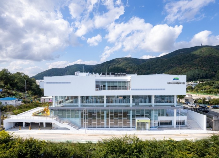 특히 지하 1층 `까치고개 책마루'와 2층 종합자료실은 등고선 형태의 좌석 배치와 시야 간섭을 고려한 책장 배치를 통해 어느 곳에서나 멋진 바다를 감상할 수 있도록 했다.