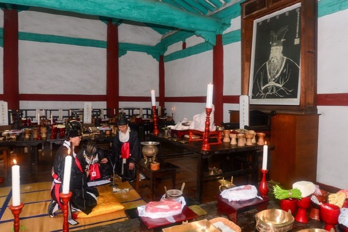 석전대제는 매년 춘추 상정일(음력 2월, 8월)에 공자의 인의와 도덕을 근본으로 한 학덕을 기리기 위해 성현의 신위전에 술과 폐백을 올리는 전통 의식이다. 조선시대부터 이어져 온 유교 제사의식의 대표적 모범으로, 1986년 국가무형문화유산으로 지정됐다.