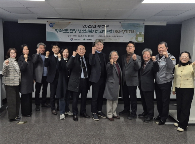 김대권 수성구청장은 “청소년복지심의위원회는 지역 청소년안전망 운영의 핵심 축이며, 온라인 도박과 같은 디지털 중독 문제는 조기 발견과 즉각 개입이 무엇보다 중요하다”며 “필수 연계 기관과의 긴밀한 협력을 통해 위기청소년을 신속히 지원하겠다”고 말했다.