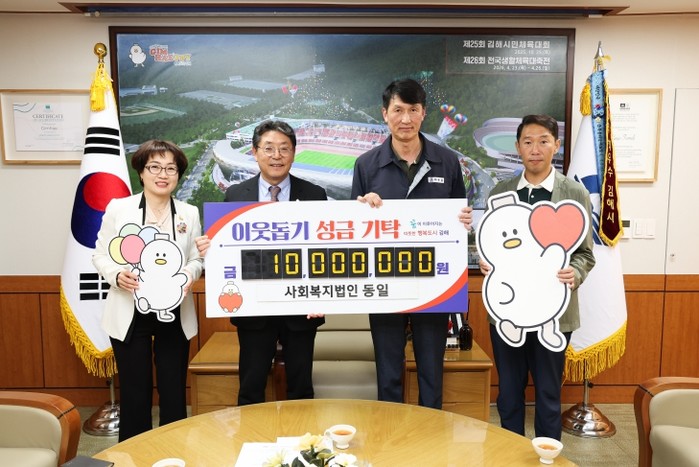 사회복지법인 동일은 부산 소재 건설회사 ㈜동일이 사회공헌활동을 위해 2015년에 설립한 사회복지법인으로 해마다 기업 이익을 사회에 환원하고자 부산·경남지역에 이웃돕기 성금을 기탁해오고 있다. 작년 추석, 올해 설에도 김해시에 이웃돕기 성금 1,000만원을 각각 기탁했다.
