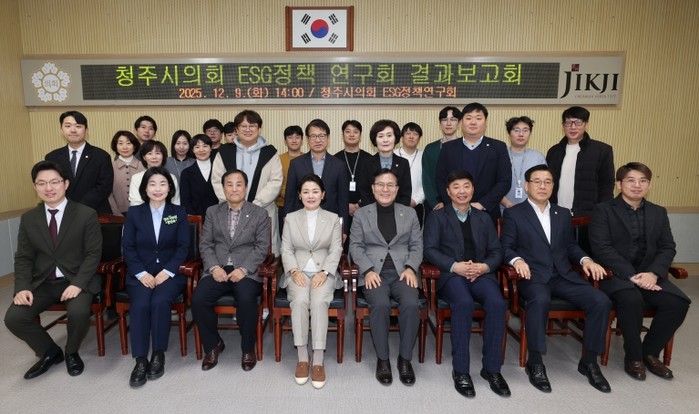 김은숙 의원은 “오늘은 그간의 연구활동을 되짚고 정책화를 위한 실질적인 출발점에 서는 자리”라며 “연구 성과를 바탕으로 제도적 틀을 마련하고, 청주시 여건에 맞는 ESG 정책이 현실화되도록 조례 제정에 만전을 기하겠다”고 밝혔다.