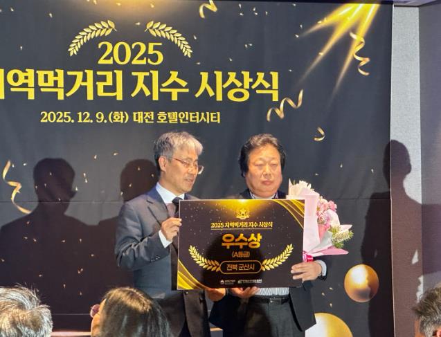 [파이낸셜경제=김예빈 기자] 군산시가 9일 대전 인터시티 호텔에서 개최한 지역먹거리지수 평가 시상식에서 2021년부터 5년 연속 우수지자체로 선정되어 우수상을 받았다.