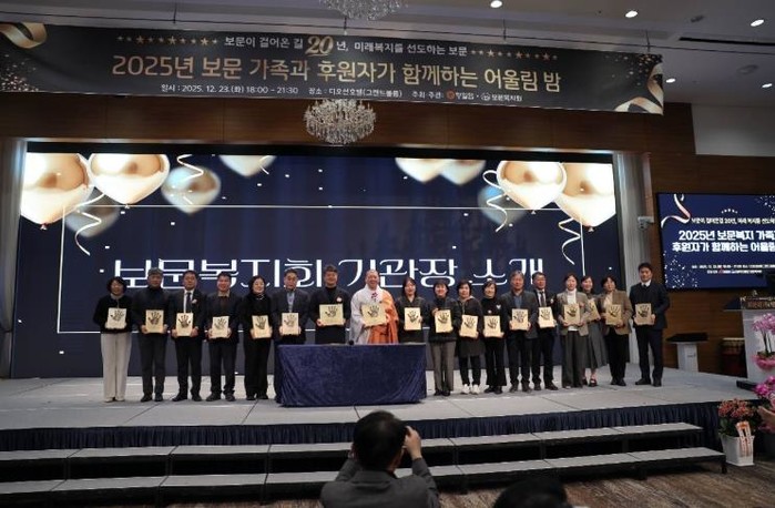 [파이낸셜경제=김예빈 기자] 사회복지법인 보문복지회는 설립 20주년을 기념해 지난 12월 23일 디오션호텔 그랜드볼룸에서 ‘2025년 보문 가족과 후원자가 함께하는 어울림 밤’을 개최했다.