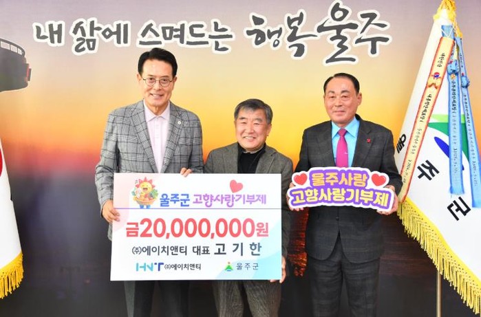 [파이낸셜경제=김예빈 기자] 고기한 ㈜에이치앤티 대표가 3일 울주군에 고향사랑기부금 연간 최고액인 2천만원을 전달하면서 4년째 고향사랑을 실천하고 있다.