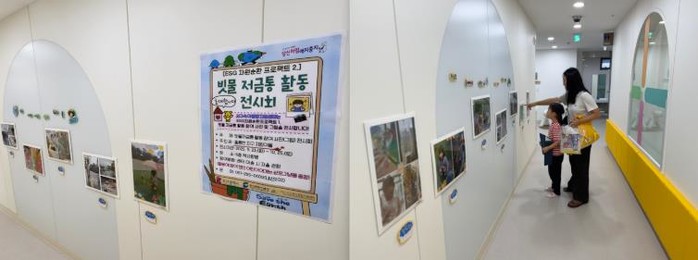 이번 전시는 ESG 자원순환 프로젝트의 일환으로 유아들이 재활용품을 활용해 직접 ‘빗물 저금통’을 제작하고 장마철 모은 빗물을 화분에 물 주기, 양말 빨기 등 생활 속에서 활용한 과정을 담았다.