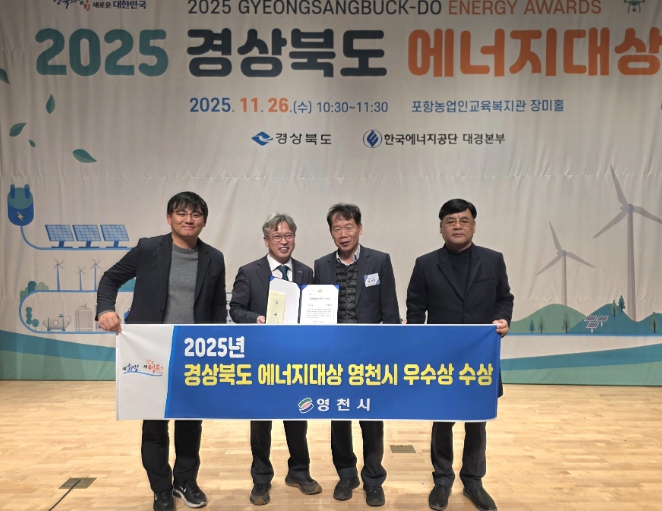 [파이낸셜경제=김지훈 기자] 영천시는 26일 포항 농업인교육복지관에서 경상북도가 주최한 ‘2025 경상북도 에너지대상’ 평가에서 공공부문 우수상을 수상했다.