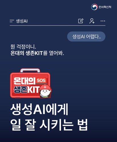 예를 들어 "신입 교육 프로그램 만들어줘"보다는 "인사혁신처 교육 담당자 입장에서 신규 공무원 대상 교육과정을 3일 일정으로 설계해줘"라고 요청해 보세요. 역할을 구체적으로 설정할수록 생성 AI의 답변은 더 정책적이고 실무에 맞게 달라집니다.