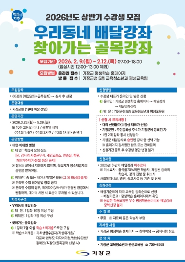 | ▲ 기장군 2026년 상반기 배달강좌 안내문 |
