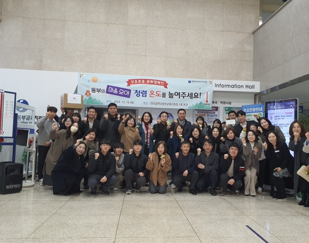 [파이낸셜경제=김영란 기자] 대전동부교육지원청은 12월 16일 전 직원을 대상으로 ‘동부의 마음 모아 청렴 온도를 올려주세요!’행사를 실시했다.