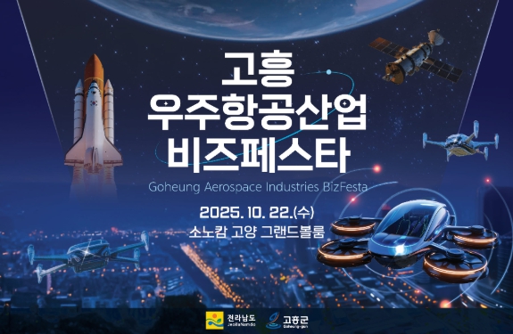 [파이낸셜경제=김예빈 기자] 고흥군은 대한민국 우주항공산업의 중심지로서 미래 전략산업을 선도하기 위해 오는 10월 22일 경기도 고양시 소노캄 호텔에서 ‘2025 고흥 우주항공산업 비즈 페스타’를 개최한다고 밝혔다.