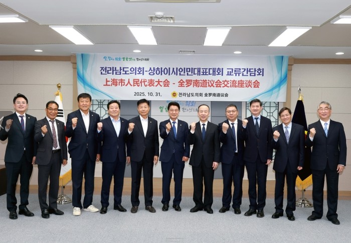 [파이낸셜경제=김예빈 기자] 전라남도의회는 10월 31일 오전 도의회에서 중국 상해시 인민대표대회 대표단을 공식 접견하고, 양 지역 지방의회 간 우호교류 및 협력 방안을 논의했다.