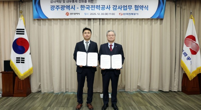 [파이낸셜경제=김예빈 기자] 광주광역시와 한국전력공사는 30일 나주 한전 본사에서 ‘감사업무 협력 강화를 위한 업무협약(MOU)’을 체결했다.