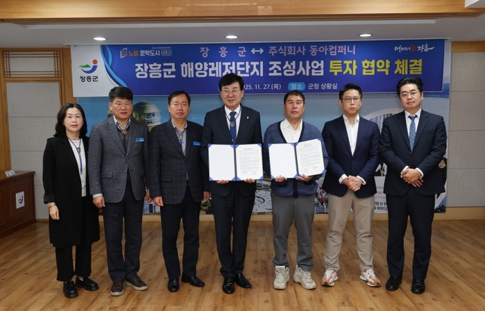 [파이낸셜경제=김예빈 기자] 장흥군은 27일 (주)동아컴퍼니와 150억원 규모의 해양레저단지 조성사업 투자협약을 체결하고, 지역 해양관광산업의 새로운 도약 기반을 마련했다.