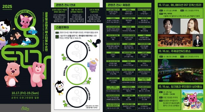 순천시는 도심 속 6만 평 광장을 웹툰, 애니메이션, 게임 등 콘텐츠로 가득 채움과 동시에 기업과 창작자가 지역에 뿌리내릴 수 있도록 콘텐츠 산업의 장기적인 비전을 보여줄 계획이다.