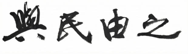 '여민유지'는 맹자(孟子) 등문공 하편에 등장하는 "뜻을 얻으면 백성과 더불어 도(道)를 행한다"는 구절에서 비롯됐다. 정치란 백성이 공감하고 스스로 따를 수 있는 길을 함께 걷는 것이라는 의미를 담고 있다. 사자성어의 휘호는 세계서예전북비엔날레조직위원회 윤점용 집행위원장(호암)이 맡아 전북의 도약을 표현했다.