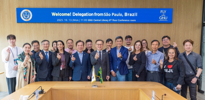 [파이낸셜경제=김예빈 기자] 경상국립대학교는 브라질 상파울루시 대표단이 10월 13일 오전 경상국립대학교를 내방하여 권진회 총장을 예방하고 우주항공, 문화콘텐츠, 미디어 분야의 협력 방안을 논의했다고 밝혔다.