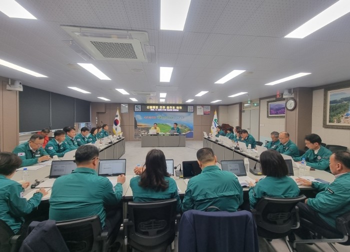 회의에서는 산불조심기간(2025.11.1.~2026.5.15.) 중 중점추진대책 보고와 읍·면 및 부서별 산불 관련 주요 역할과 협조 사항을 공유하고 대형산불 예방·대응을 위한 협력체계에 대해 논의했다.