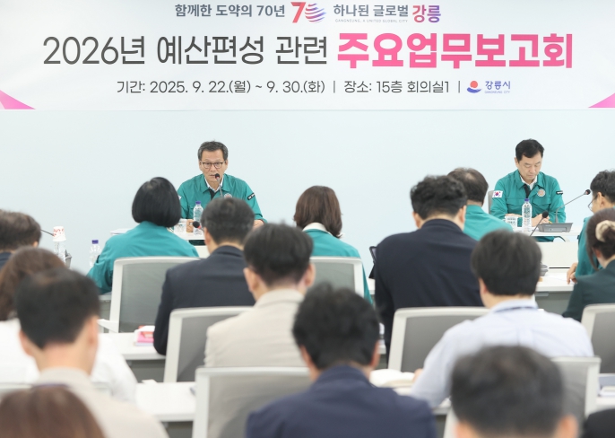 [파이낸셜경제=조성환 기자] 강릉시는 9월 22일부터 오는 30일까지 김홍규 강릉시장 주재로 시청 15층 회의실에서 2026년도 예산편성 주요업무보고회를 개최한다.
