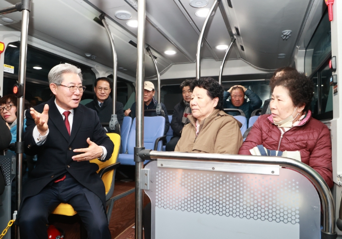 오태완 군수는 첫차에 직접 탑승해 출근길 주민들과 인사를 나누며 현장의 반응을 살폈다.