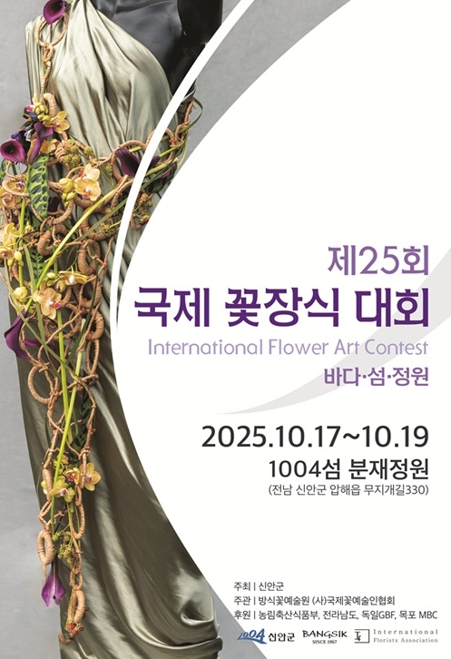[파이낸셜경제=김예빈 기자] 대한민국 K-플라워 예술의 중심으로 떠오르는 신안군에서 ‘제25회 국제꽃장식대회’가 오는 10월 17일부터 19일까지 3일간 압해읍 1004섬 분재정원에서 개최된다.