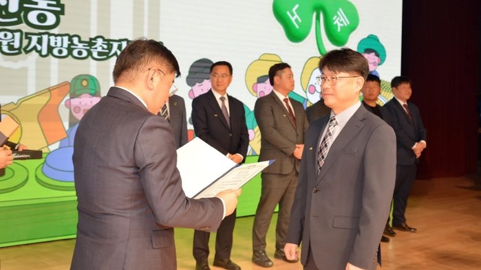 이날 시상식에서는 경상북도농업기술원 청년창업팀 김신동 농촌지도관이 대통령 표창 수상의 영예를 안았다. 4-H회와 청년농업인 육성, 전국 최초 ‘청년농업인 자립기반 구축사업’추진, 드론방제단과 영농대행단 운영을 통한 청년 일자리 창출 등 그동안의 공로를 인정받았다.