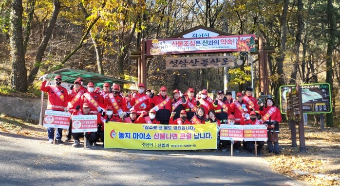 [파이낸셜경제=김지훈 기자] 경산시는 가을철 건조한 날씨로 산불 위험이 높아지는 가운데 성암산 입구에서 가을철 산불에 대비하여 산불 예방 캠페인을 실시한다고 밝혔다.