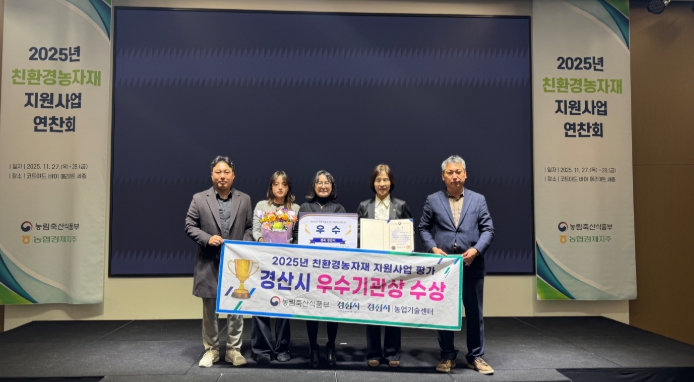 [파이낸셜경제=김지훈 기자] 경산시는 27일 세종시 코트야드 메리어트에서 열린 농림축산식품부 주관의 2025년 친환경농자재 지원사업 연찬회에서 '친환경농자재 지원사업 평가' 우수 기관상을 수상했다고 밝혔다.
