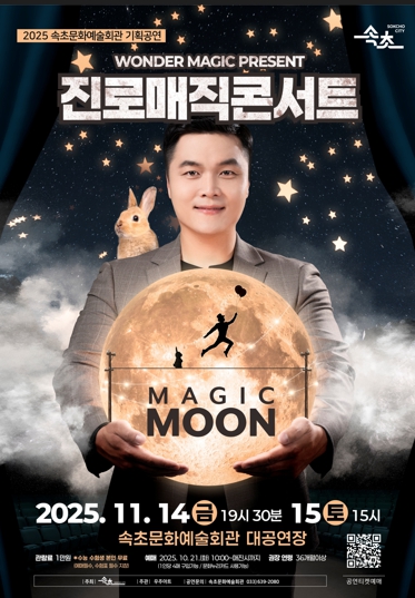 [파이낸셜경제=조성환 기자] 속초시는 오는 11월 14일 금요일과 11월 15일 토요일 이틀간 속초문화예술회관에서 최형배 마술사의 진로매직콘서트 MAGIC MOON을 선보인다.