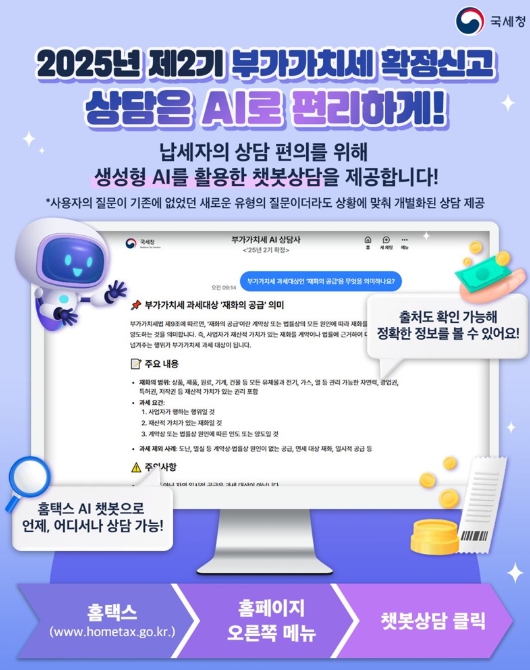 [파이낸셜경제=김영란 기자] ■ 2025년 제2기 부가가치세 확정신고 상담은 AI로 편리하게!