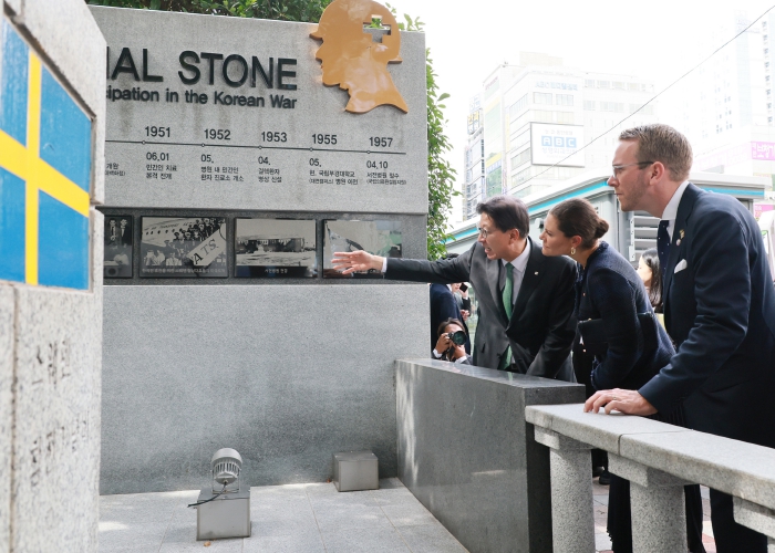 대표단은 오늘(17일) 오전 의료지원단 참전기념비(태종대 소재)에서 열리는 스웨덴 야전병원 파견 75주년 기념식에 참석한다. 이후 박형준 시장과 함께 스웨덴 참전기념비(부산진구 소재)를 방문한 후, 박 시장 주재의 '스웨덴 빅토리아 왕세녀 부산 공식 방문 환영 오찬'에 참석할 예정이다.