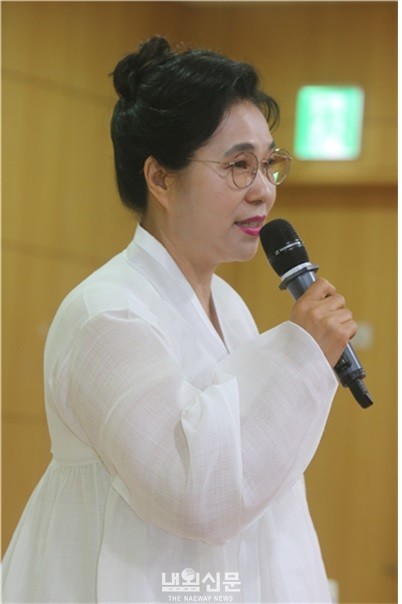 | ▲사진. 오양심 시인(한글세계화운동연합 회장) 시낭송 |