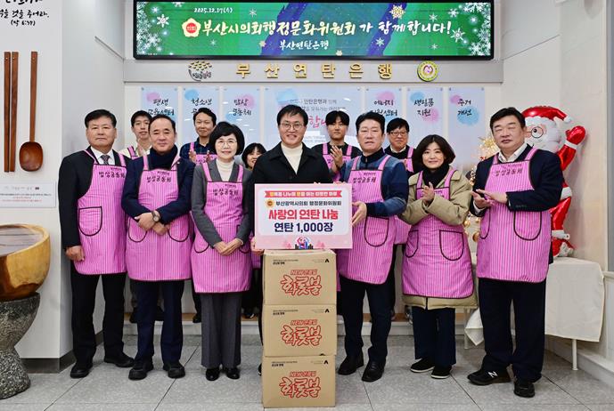 [파이낸셜경제=박영진 기자] 부산광역시의회 행정문화위원회는 12월 17일 오전 10시 부산연탄은행에서 동절기 난방 취약계층과 지역 소외계층의 따뜻한 겨울나기를 돕기 위해 연탄 기부금 전달 및 배식 봉사활동을 실시했다.
