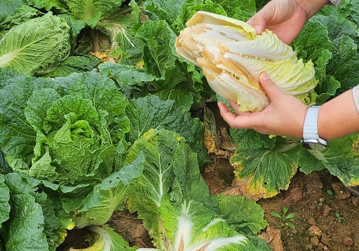 [파이낸셜경제=김예빈 기자] 해남군은 최근 잦은 강우로 인해 배추 재배지의 토양이 습해지면서 배추 병해 및 해충 발생이 확산되고 있어 재배농가에 각별한 주의를 당부하고 있다.
