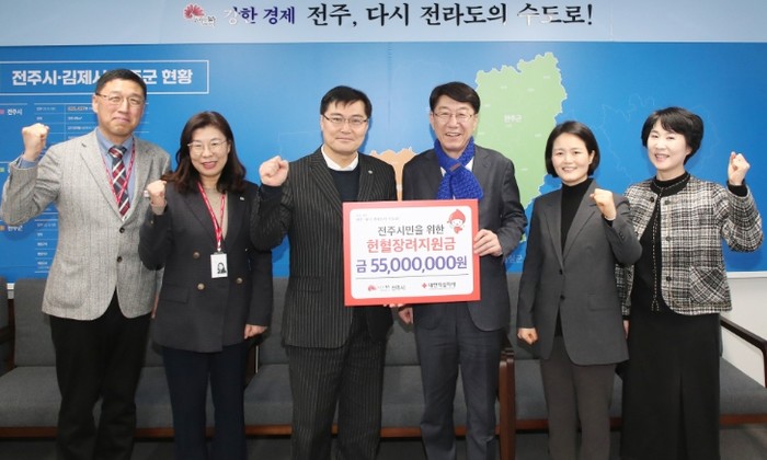 시는 10일 헌혈 문화 확산과 시민 참여를 독려하기 위해 대한적십자사 전북혈액원에 ‘헌혈 장려 상품권’을 전달했다고 밝혔다.