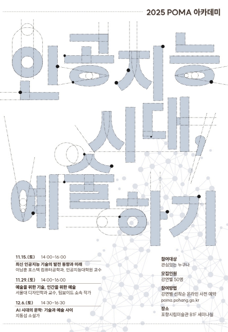 포항시립미술관 관계자는 “AI 기술이 일상 깊숙이 스며든 시대에 예술은 인간의 본질을 다시 묻는 역할을 하고 있다”며, “이번 POMA 아카데미를 통해 예술이 기술과 공존하는 방법, 그리고 인간다움의 의미를 함께 고민하는 계기가 되길 바란다”고 밝혔다.