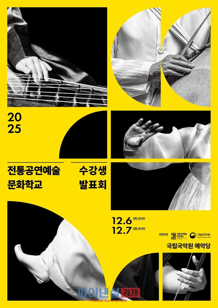 [파이낸셜경제=박영진 기자] 전통공연예술진흥재단(이사장 배영호)은 오는 12월 6일(토)과 7일(일) 양일간 국립국악원 예악당에서 ‘2025 전통공연예술문화학교 수강생 발표회’를 개최한다고 밝혔다.