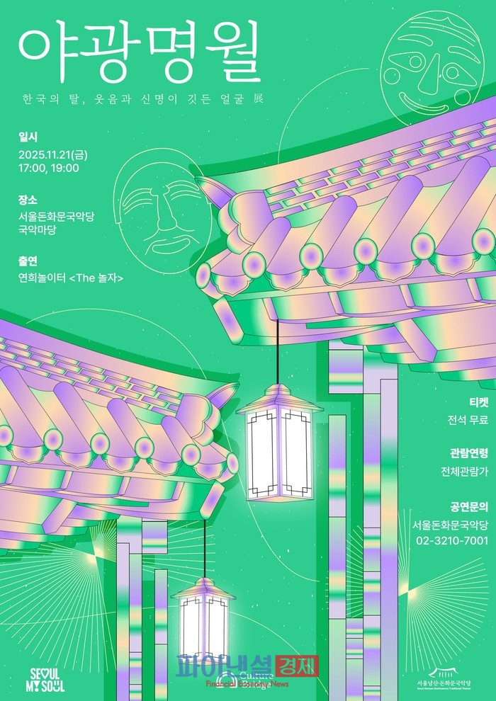 [파이낸셜경제=박영진 기자] 서울돈화문국악당은 오는 11월 15일부터 30일까지 전통 탈춤과 전시, 체험이 어우러진 전통예술 융합형 공연 ‘2025 돈화문 야광명월 II : 한국의 탈, 웃음과 신명이 깃든 얼굴 展’을 개최한다.