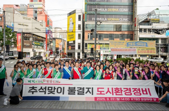 [파이낸셜경제=박영진 기자] 부산진구는 지난 22일 서면1번가 일원에서 공무원, 새마을회·바르게살기협의회·한국자유총연맹 유관단체와 주민 등 약 150명이 참여한 가운데 추석맞이 도시환경정비 행사를 가졌다고 밝혔다.
