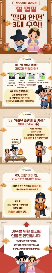 이번 수칙은 명절 기간 빈번하게 발생하는 사고 유형을 분석하여 ▲기도폐쇄 응급처치(하임리히법) ▲주방 식용유 화재 예방 ▲빈집 전열기구 관리 등 생활 밀착형 안전 정보를 담고 있다.