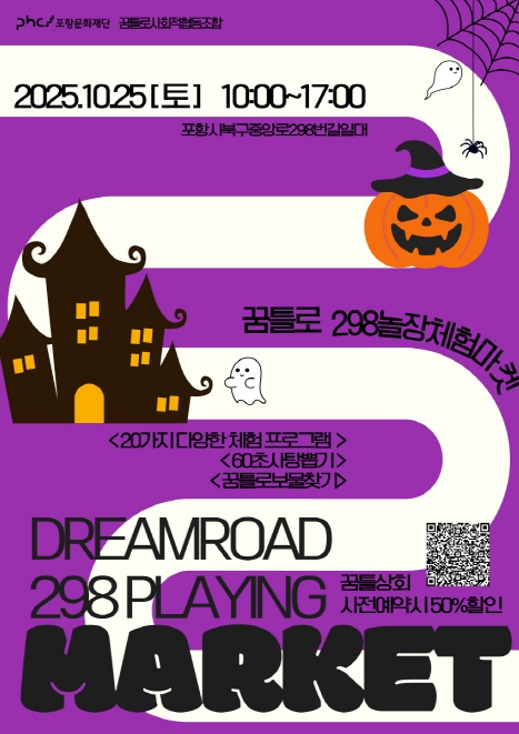 [파이낸셜경제=김지훈 기자] 재단법인 포항문화재단은 오는 25일 오전 10시부터 오후 5시까지 포항 원도심 꿈틀로 일대에서 ‘꿈틀로 체험마켓 298놀장’ 10월 행사를 개최한다.