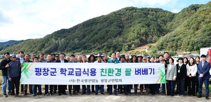 | ▲ 평창군, 학교 급식용 친환경 쌀 수확 행사 개최 |