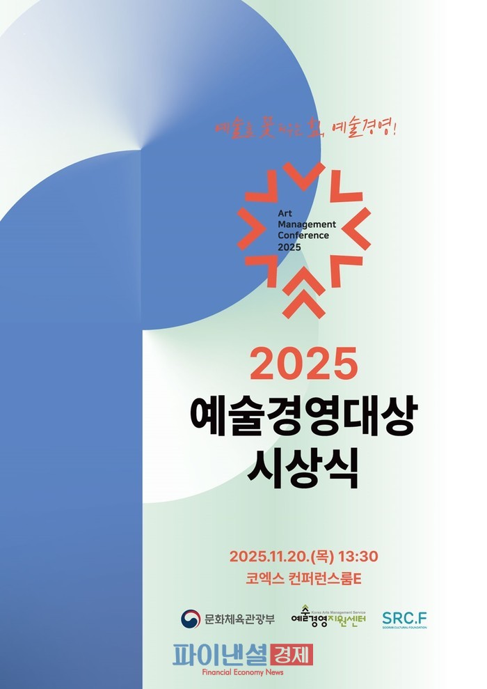 [파이낸셜경제=박영진 기자] 문화체육관광부(장관 최휘영, 이하 문체부)는 예술경영지원센터(대표 김장호), 수림문화재단(이사장 전경희)과 함께 11월 20일(목) 서울 삼성동 코엑스에서 ‘2025 예술경영대상 시상식’을 열어 예술 현장과 산업 분야의 발전에 기여한 예술기업, 단체, 기관, 개인을 격려하고, 공모를 통해 발굴한 예술경영 우수사례를 소개했다.