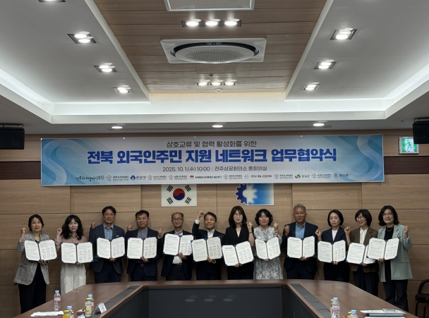 [파이낸셜경제=김예빈 기자] 전북국제협력진흥원은 오늘인 10월 1일, 전주상공회의소 중회의실에서 도내 외국인지원센터 운영기관들과 함께 '전북 외국인주민 지원 네트워크 협약'을 체결했다고 밝혔다.