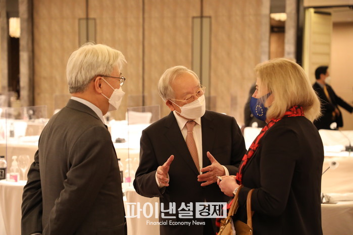 마리아 카스티요 페르난데즈 주한EU 대사는 “EU와 한국 모두에게 녹색·디지털 경제 협력은 팬데믹 이후 회복에 있어서 매우 중요하다”며 “이 분야에서의 경제협력이 더욱 활발히 논의되길 바라고, 탄소국경조정제도 시행에 대한 한국 경영계의 우려도 지속적으로 검토하겠다”고 말했다.