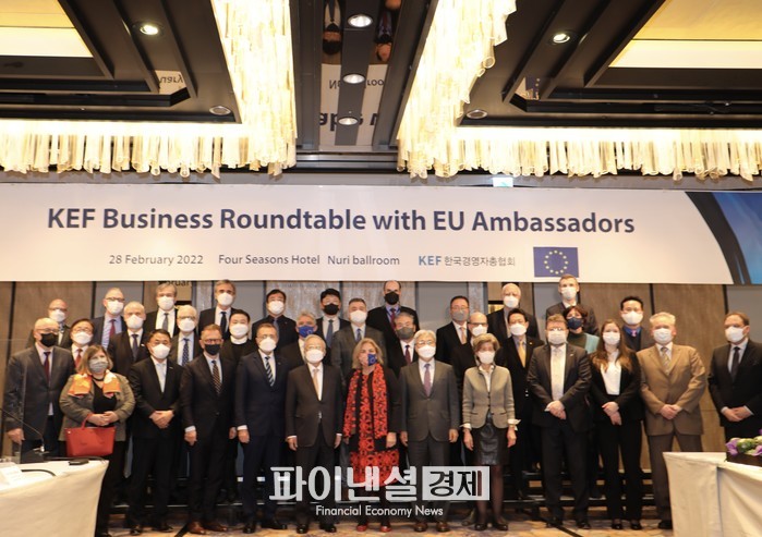 이어서 손 회장은 “우크라이나 사태로 해외 원재료와 수출의존도가 높은 국내 자동차·반도체·가전·석유화학 기업들의 불안감이 커지고 있다”며 “우리 기업들의 피해가 최소화될 수 있도록 오늘 간담회가 EU 대사단과 기업 간 정보교류 및 소통창구가 되길 바란다”고 말했다.